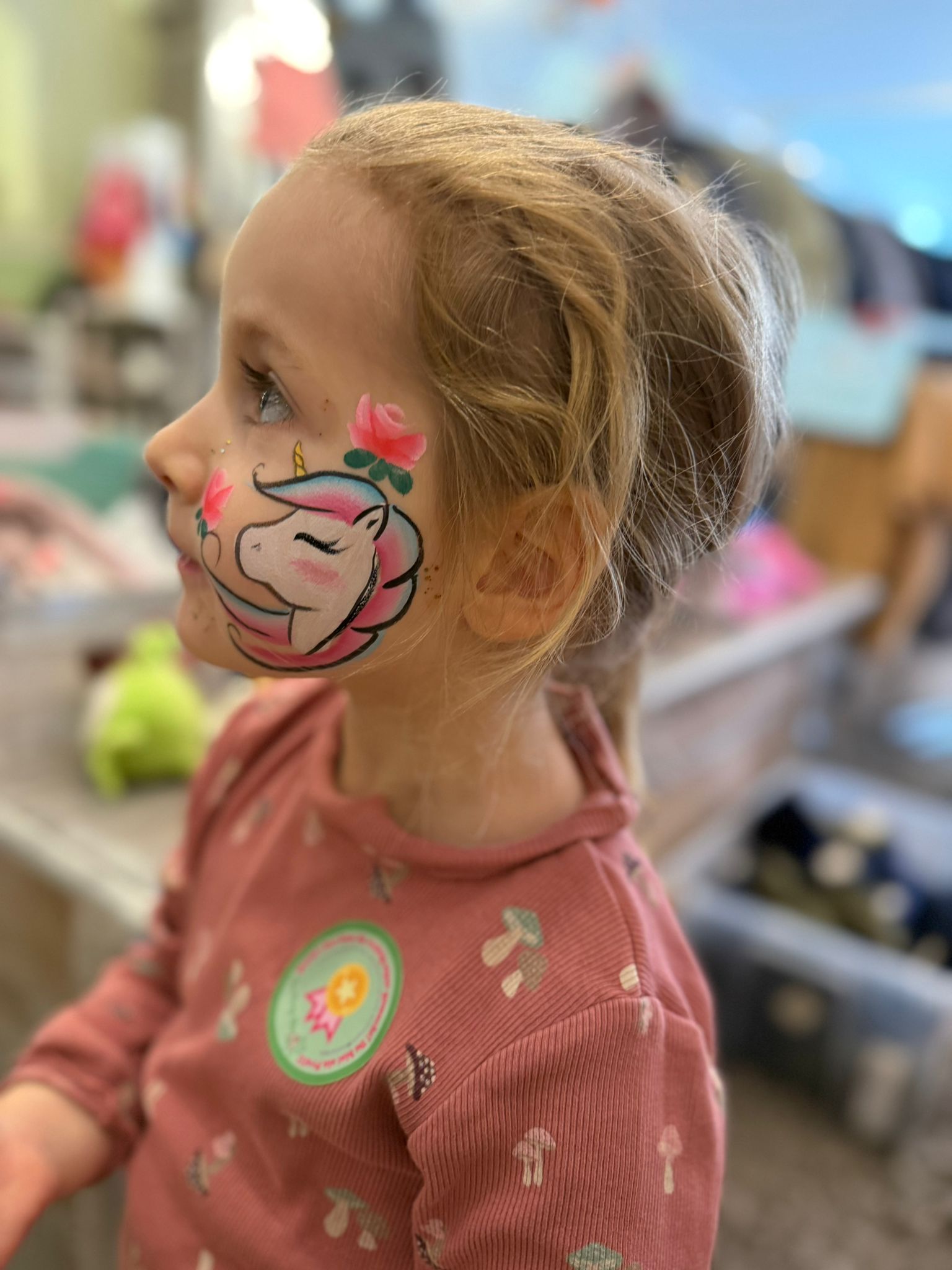 Seit Februar 2025 ist es soweit, meine älteste Tochter steigt mit ein und möchte sich ihren Traum vom Kinderschminken erfüllen. Sie war schon immer für das Malen und Zeichnen zu begeistern, da war das Kinderschminken nur eine weitere Form. In den letzten Jahren hat sie der Mama fleißig über die Schulter geschaut, ihren Bruder und zahlreiche Freiwillige geschminkt. Nun, kommt sie zu Kindergeburtstagen und verzaubert dort die kleinen Gäste.